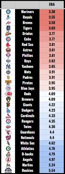 2024 Team Leaderboard: Starting Rotation ERA