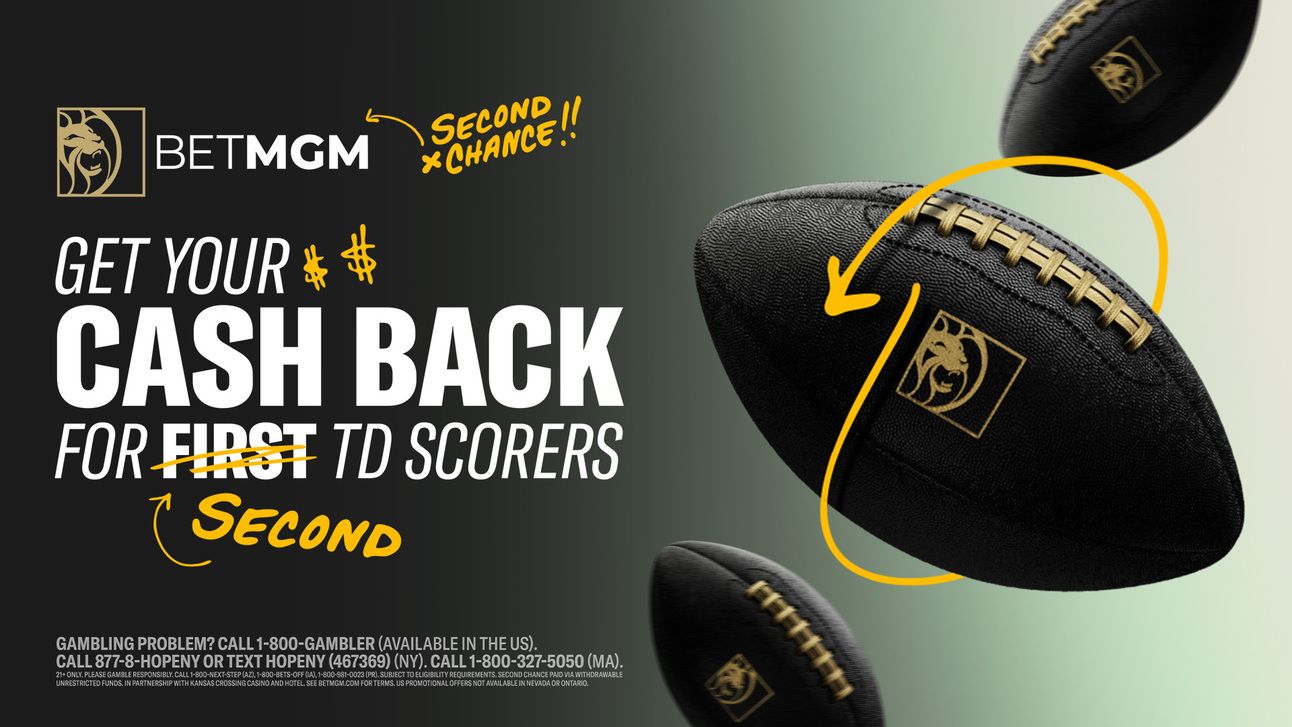 Did you miss a pro football bet on a First-Touchdown Scorer? You can still earn your stake back in cash if that player scores the game’s second touchdown! BetMGM’s new “Second Chance” promotion allows anyone who places a straight bet on a player to score the game’s first touchdown to automatically win back their wager if that player scores the second touchdown.