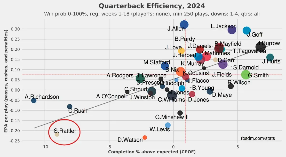 - EPA per dropback: -0.07 (30th)