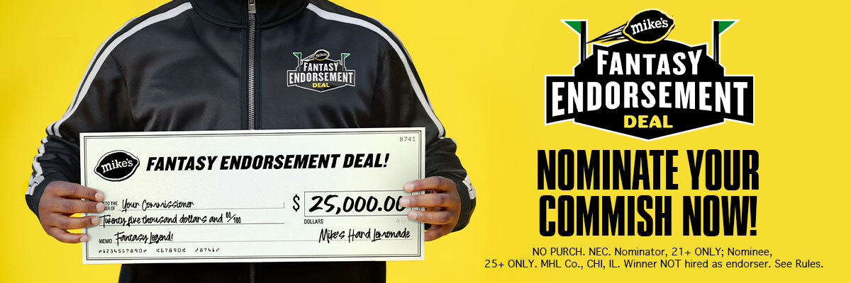 You have one mission today — get your commissioner PAID! Mike's Hard Lemonade wants to help you do it. For the first time ever, Mike's is offering a straight-up endorsement deal to one lucky Fantasy Commissioner as part of the Mike's Fantasy Endorsement Deal contest! Registration ends on Dec. 9, so do it now, PLEASE, before you forget. The winner gets: