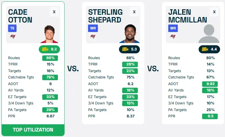 Otton has a 6.2 Utilization Score over the last three games since Mike Evans' return. However, Evans hasn't been the issue. The real problem has been the emergence of Sterling Shepard and Jalen McMillan.