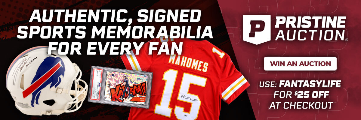 To help you get over the waiver woes, Pristine Auction is hooking up Pristine Life fans with a win! Head to pristineauction.com, register with code FL20 and snag $20 in credits toward your first auction win. Already registered? Pristine Auction is giving you $25 off your next win, just use code "fantasylife" at checkout for your $25 off. Trust me—what you can score is next-level.