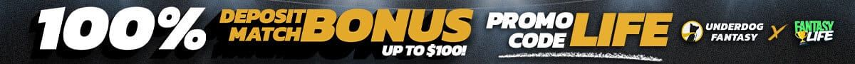 Sign up today using our code LIFE and Underdog Fantasy will match up to $100 for your first deposit! Seriously, sign up TODAY to get a 100% deposit match of up to $100.