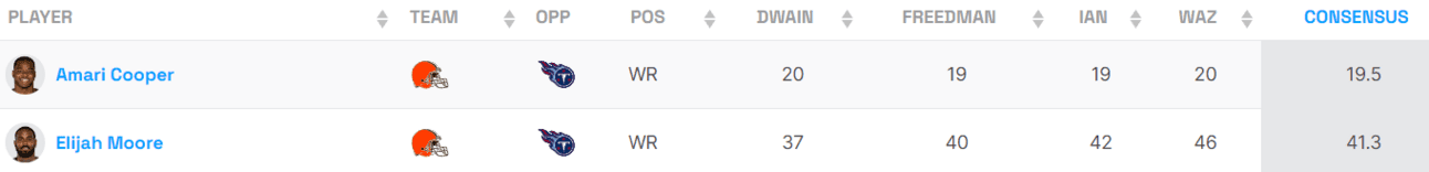 Jerome Ford, who will take over for the injured Nick Chubb, still ranks as a fringe RB2 for us thanks to the projectable volume, but I’d prefer to play the Browns through the passing game and hope that Amari Cooper and Elijah Moore can replicate what the Chargers duo did last week: