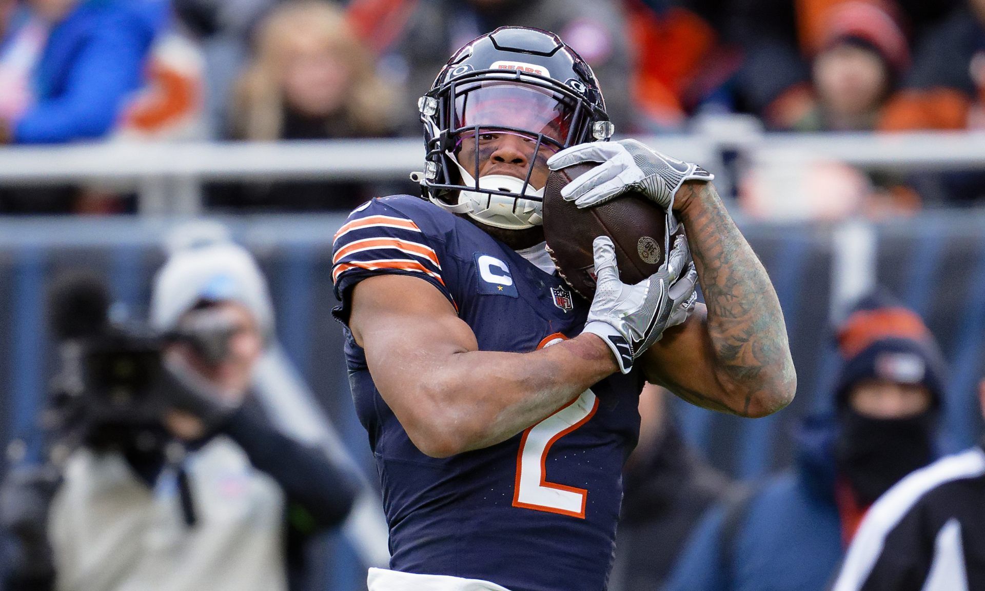 Dec 10, 2023; Chicago, Illinois, USA; Chicago Bears wide receiver DJ Moore (2) catches a pass against the Detroit Lions at Soldier Field. Mandatory Credit: Jamie Sabau-USA TODAY Sports